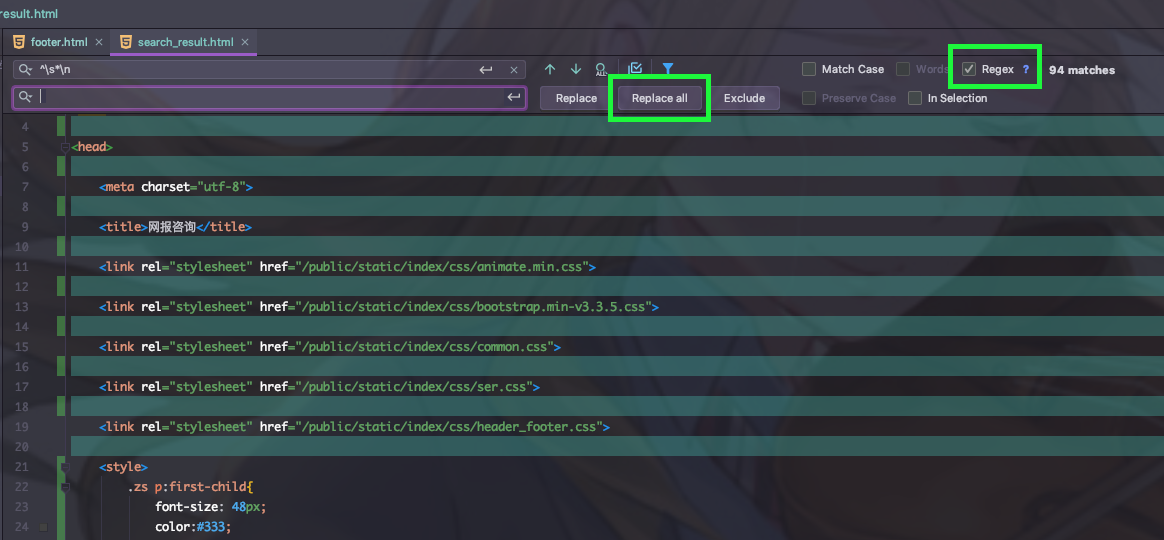 有的时候,队友拒绝使用 Git 这里版本管理工具,而且 Mac 与 Windows 或者不同的 IDE 的关系,总是有时候队友编辑后端的文档就会出现很多空行。这个时候不想理他的话可以自己使用 正则 查找替换一下。
